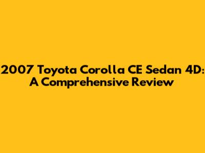 Overall, the 2007 Toyota Corolla CE Sedan 4D is a highly reliable vehicle that can provide many years of dependable service with proper maintenance. By following a regular maintenance schedule and addressing any issues promptly, owners can ensure that their Corolla CE remains in good condition and continues to provide reliable transportation for years to come.