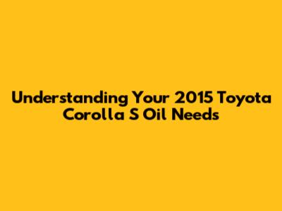 Understanding Your 2015 Toyota Corolla S Oil Needs