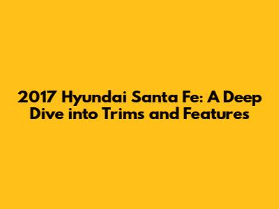Hey there, car enthusiasts! Let's dive into the 2017 Hyundai Santa Fe, a vehicle that has captured the hearts of many with its versatility and style. Today, we're going to explore the different types and features of this popular SUV. Whether you're a seasoned Santa Fe owner or considering buying one, this guide will provide you with all the essential details to make an informed decision. Get ready to uncover the ins and outs of the 2017 Hyundai Santa Fe and find out which trim best suits your lifestyle and needs.