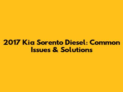 2017 Kia Sorento Diesel: Common Issues & Solutions
