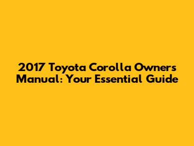2017 Toyota Corolla Owners Manual: Everything You Need