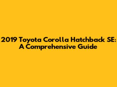2019 Toyota Corolla Hatchback SE: A Comprehensive Guide