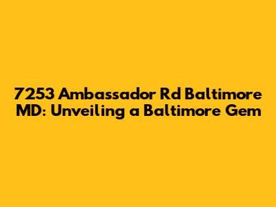 Hey guys! Let's dive into everything you need to know about 7253 Ambassador Rd, Baltimore, MD. Whether you're a potential buyer, a curious neighbor, or just someone interested in Baltimore real estate, this article is your go-to resource. We'll explore the property's characteristics, neighborhood vibes, local amenities, and all the essential details that make this location special. Stick around, because we're about to uncover a Baltimore gem!