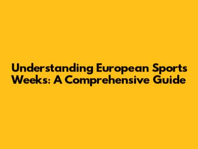 A Guide To Understanding European Sports Weeks