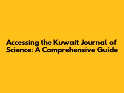 Accessing The Kuwait Journal Of Science: A Comprehensive Guide
