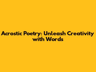 Acrostic Poetry: Unleash Creativity With Words