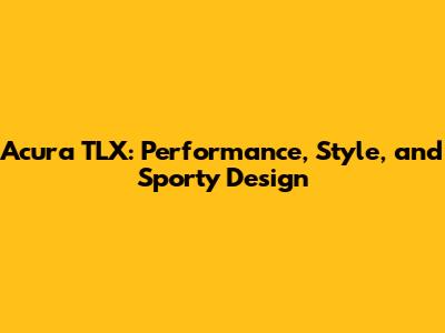Acura TLX: Performance, Style, And Sporty Design