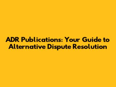 ADR Publications: Your Guide To Alternative Dispute Resolution