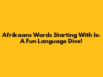 Afrikaans Words Starting With Ie: A Fun Language Dive!