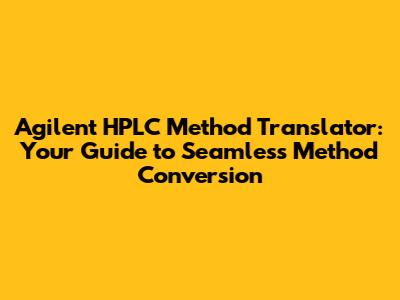 Agilent HPLC Method Translator: Simplify Your Lab Workflow