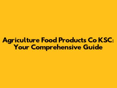 Agriculture Food Products Co KSC: Your Go-To Guide