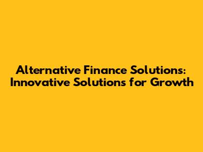 Alternative Finance: Innovative Solutions For Growth