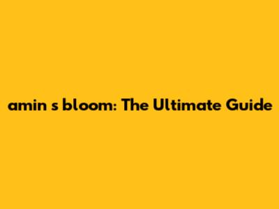 Amin S Bloom: The Ultimate Guide