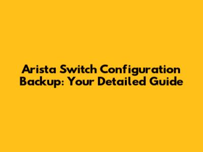 Arista Switch Configuration Backup: Your Detailed Guide