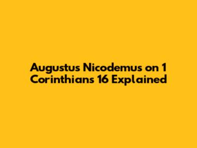 Augustus Nicodemus On 1 Corinthians 16 Explained