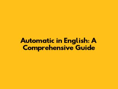 Automatic In English: A Comprehensive Guide