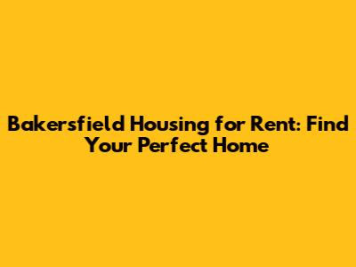 Bakersfield Housing For Rent: Find Your Perfect Home