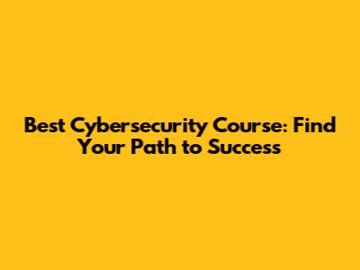 Best Cybersecurity Course: Find Your Path To Success