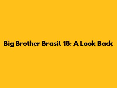 Big Brother Brasil 18: A Look Back