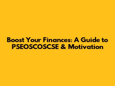Boost Your Finances: A Guide To PSEOSCOSCSE & Motivation