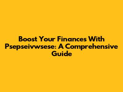 Boost Your Finances With Psepseivwsese: A Comprehensive Guide