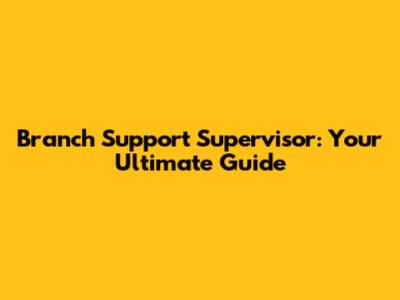 Branch Support Supervisor: Your Ultimate Guide