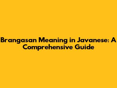Brangasan Meaning In Javanese: A Comprehensive Guide