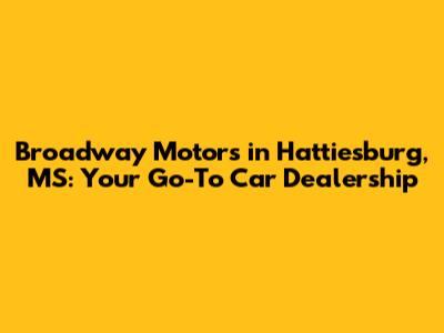 Hey guys! Are you on the hunt for a reliable car dealership in Hattiesburg, Mississippi? Look no further! In this article, we're diving deep into Broadway Motors, a name that's become synonymous with quality service and a fantastic selection of vehicles. Whether you're looking for a brand-new ride or a dependable pre-owned car, Broadway Motors might just be your one-stop shop. Let's explore what makes them stand out, shall we?