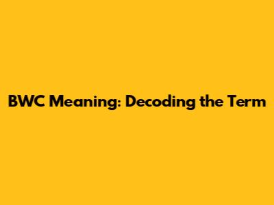 BWC Meaning: Decoding The Term