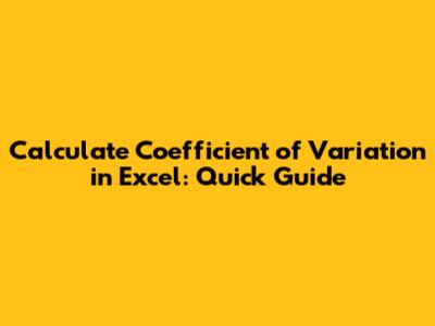Calculate Coefficient Of Variation In Excel: Quick Guide