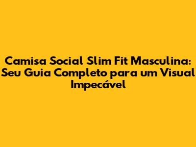 Camisa Social Slim Fit Masculina: Guia Completo E Dicas De Estilo