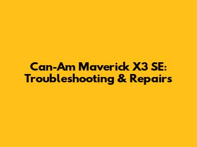Can-Am Maverick X3 SE: Troubleshooting & Repairs