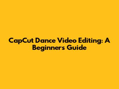 CapCut Dance Video Editing: A Beginner's Guide