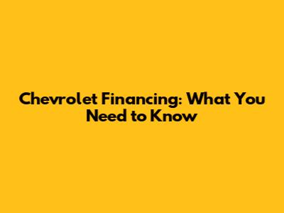 Chevrolet Financing: What You Need To Know