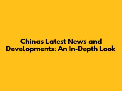 China's Latest News And Developments