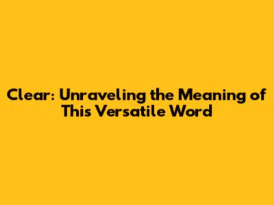 Clear: Unraveling The Meaning Of This Versatile Word