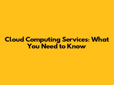 Cloud Computing Services: What You Need To Know