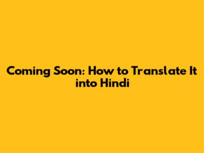 Coming Soon: How To Translate It Into Hindi