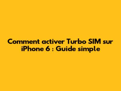 Comment Activer Turbo SIM Sur IPhone 6 : Guide Simple