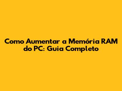 Como Aumentar A Memória RAM Do PC: Guia Completo