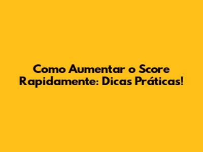 Como Aumentar O Score Rapidamente: Dicas Práticas!