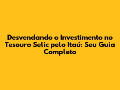 Por Que Escolher o Itaú para Investir no Tesouro Selic?