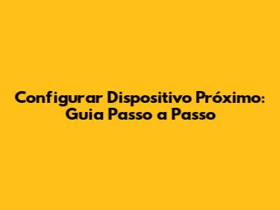 Configurar Dispositivo Próximo: Guia Passo A Passo