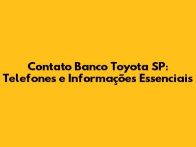 Telefones Úteis do Banco Toyota em São Paulo
