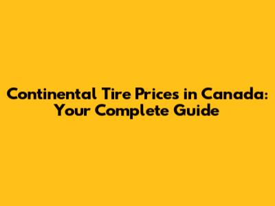 Continental Tire Prices In Canada: Your Complete Guide