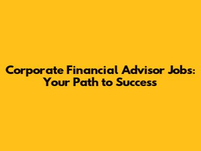 Corporate Financial Advisor Careers: Your Path To Success