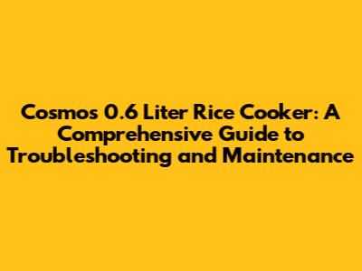 Cosmos 0.6 Liter Rice Cooker: A Comprehensive Guide to Troubleshooting and Maintenance
