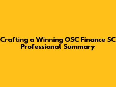 Crafting A Winning OSC Finance SC Professional Summary