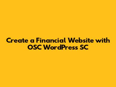 Create A Financial Website With OSC WordPress SC