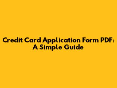 Credit Card Application Form PDF: A Simple Guide